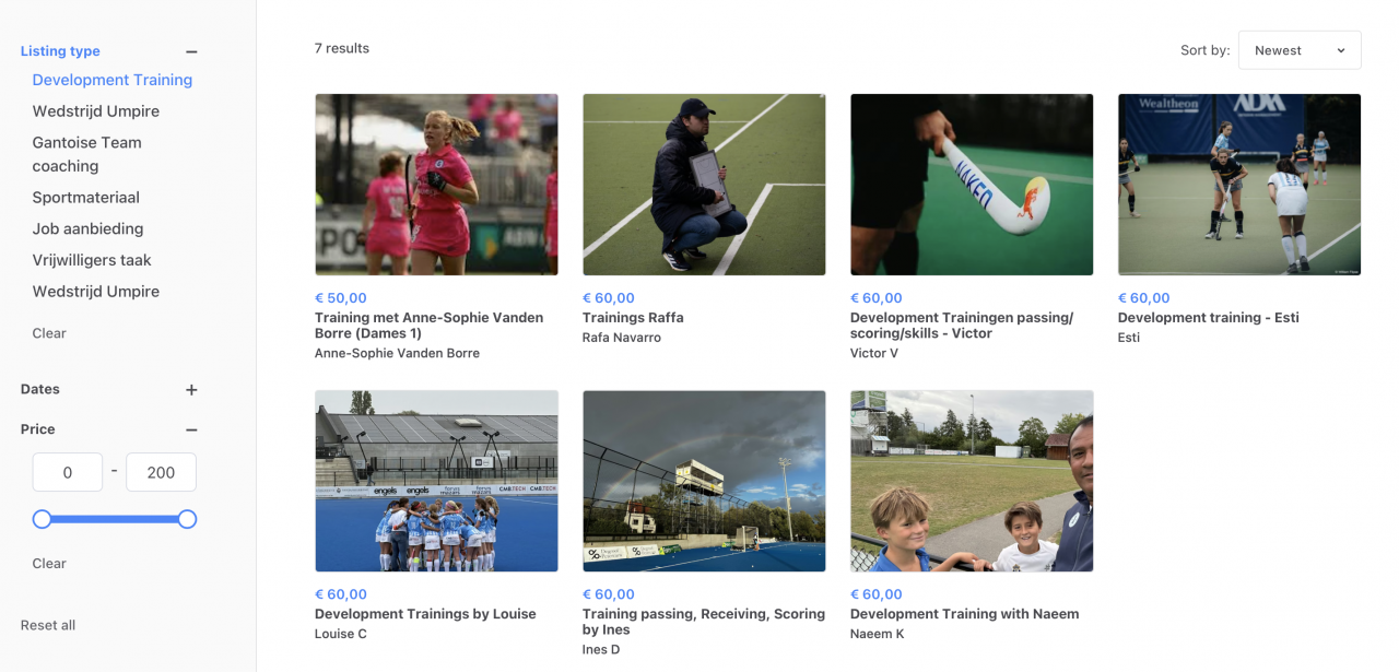 Voor het vastleggen van een development training (individueel of in groep) maken we gebruik van de Gantoise Marketplace. Indien jouw voorkeur trainer geen training aanbiedt op een voor jou gepast moment kan je hem steeds contacteren via de marketplace en vragen een slot toe te voegen. Development trainingen zijn ook toegankelijk voor niet Gantoise spelers. Momenteel zijn de volgende trainers beschikbaar voor development trainers: